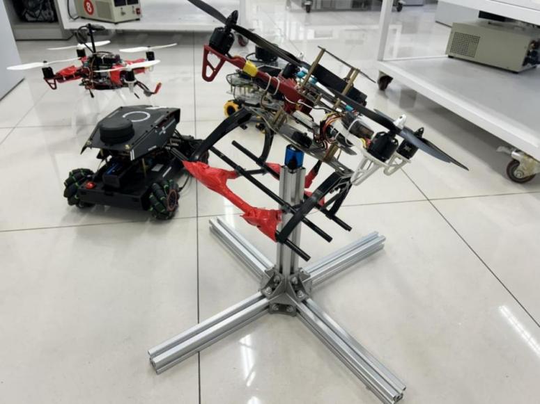 周映江老师带领调研组参观了自动化控制原理实验室,介绍了多旋翼飞行控制综合实验平台、员工设计的无人机和智能车,其间重点讲解了基于Pixhawk的四旋翼无人机仿真转台,是如何通过Simulink进行控制理论的实物仿真,大大降低实验成本和物料损耗,为控制理论落地提供坚实基础的原理。