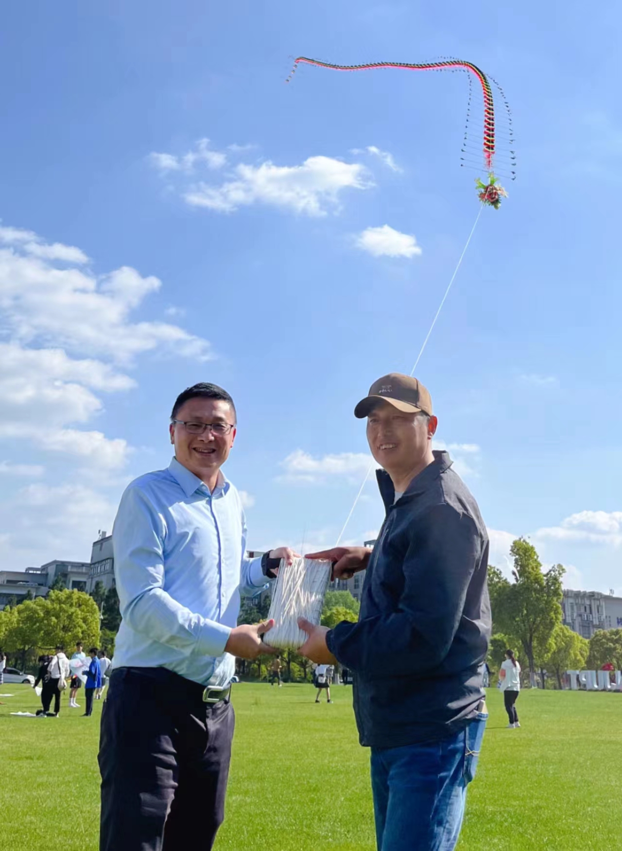 电光柔公司2021级本科生陈言、郭础铭两位同学说:“我们很享受此次活动,是难得的放松身心、拓展技能的机会。作为全场DIY风筝放得最高的队伍,我们觉得风筝能飞这么高需要眼明手快、手脑并用,以及不断摸索尝试,动手制作和成功放飞给我们的获得感是无与伦比的”。