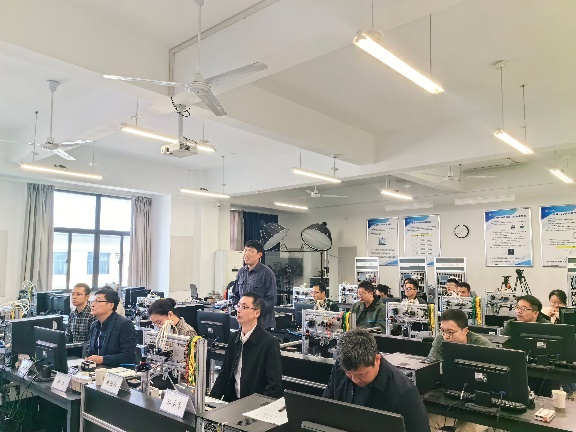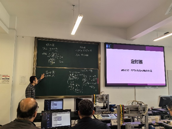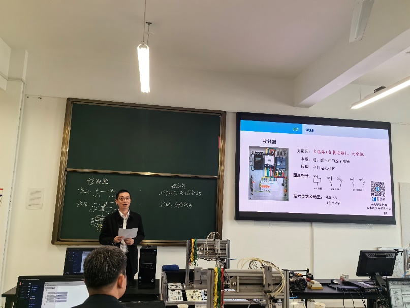 活动中,首先由吴亚勇老师、马凯威老师分别对电气控制与可编程控制器课程的《接触器》、《定时器》进行授课,两位老师从知识点定义、原理、应用等方面入手,结合工匠精神,系统的展示课程知识,并进行员工技能训练。随后,赵勃老师重新演绎了上述的两个授课片段。赵老师在教学过程中结合日常生活中的实际案例,采用了启发式教学、案例式教学等多种教学方法,化繁为简将晦涩难懂的工科知识生动有趣的娓娓道来,并恰如其分的融入人文积淀、审美情趣、理性思维等。