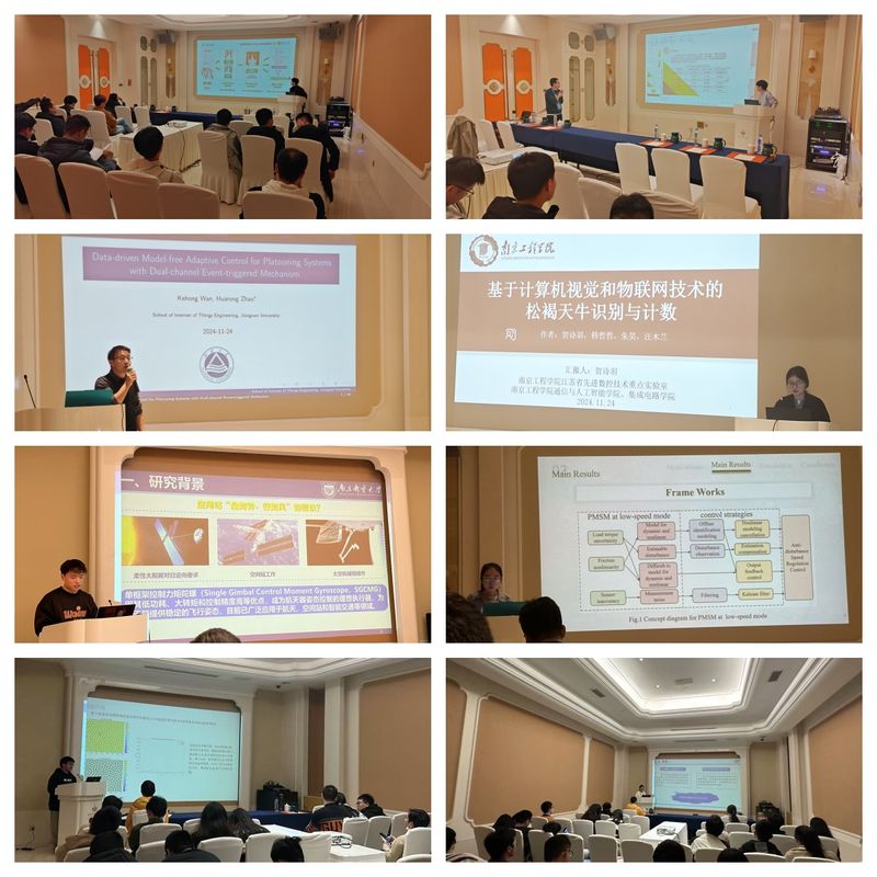 下午,大会进入分论坛报告阶段,共分为9个分论坛,主题分别为:“智能计算与机器学习”“运动控制与工业自动化”“控制理论与应用”“农业自动化与物联网”“机器视觉与图像处理”“模式识别与智能系统”“智能机器人与应用”“公司产品”和“最佳论文答辩”。在各分论坛报告中,100余名参会作者分别报告了论文情况,并就各自论文成果展开了深入的讨论,共同分享了最新研究进展和取得的成果。其中,在最佳论文答辩分论坛,南京理工大学邹云教授作了题为省级学术平台的运用:兼论研究生学术能力的训练与实践的报告。在公司产品分论坛上,学会副理事长、南京理工大学徐胜元教授,哈尔滨工程大学副董事长赵玉新教授和太阳集团tyc33455官网太阳集团tyc33455官网执行经理魏海坤教授分别作了题为“新工科”背景下自动化专业人才培养模式的探索与实践、“OODA+AI”驱动的自动化领域未来创新人才培养模式探索与实践和《工程设计导论》一流课程建设:自动化类专业新生工程感受课实践的报告。