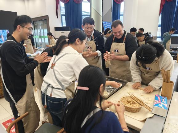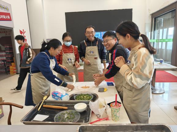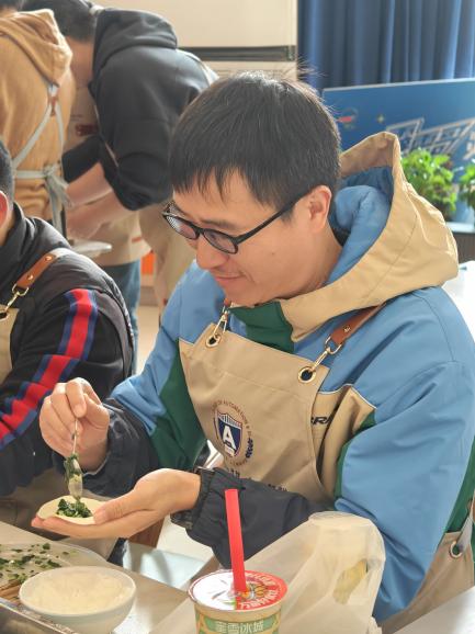 活动当天,老师们陆续抵达活动现场,领取公司工会统一定制的围裙,自行组队,开始包饺子。小组成员分工协作,有人擀皮有人包,一张张洁白的面皮配上精心调好的馅料在大家的手中变成了一个个胖嘟嘟、圆鼓鼓的饺子。现场气氛和谐、笑语不断,大家时而探讨心得,时而过招切磋,冬日的阴霾在欢声笑语中消散。最后把包好的饺子下锅,热腾腾的饺子,暖融融的情谊,大家边吃边聊,尽情享受美食带来的满足。
