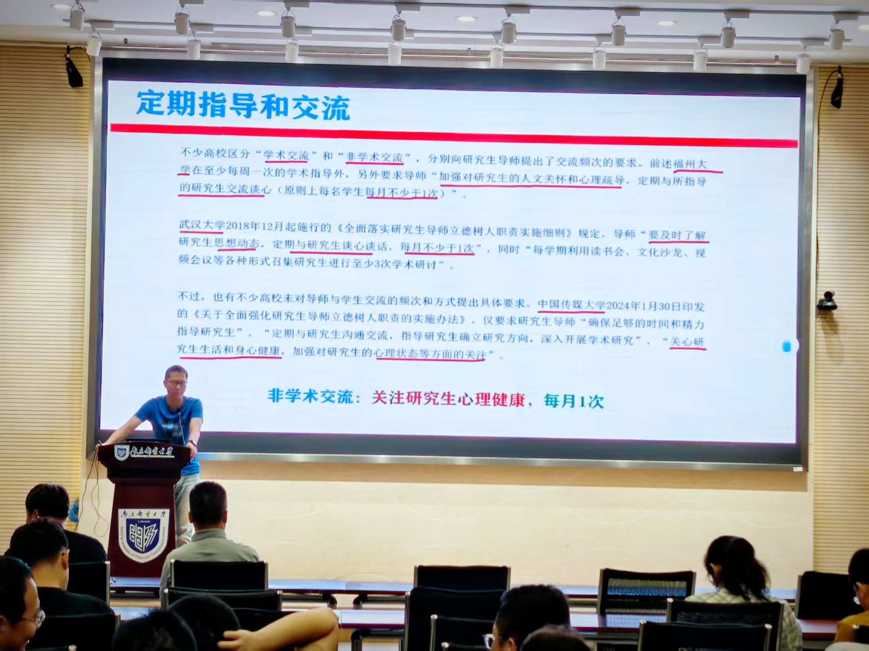 肖敏教授以《公司产品中的问题思考》为题,从公司产品的重要性出发,分享了选拔与指导研究生的宝贵经验。他指出,选拔研究生应注重其研究热情、抗压能力和积极心态。在培养过程中,需要通过定期指导、因材施教,加强团队建设,不断激发员工潜能。肖教授提出:“导师犹如玉匠,需慧眼识珠,也要用匠心去雕琢。”他还强调,导师要积极关注研究生心理健康,助力员工成长成才。